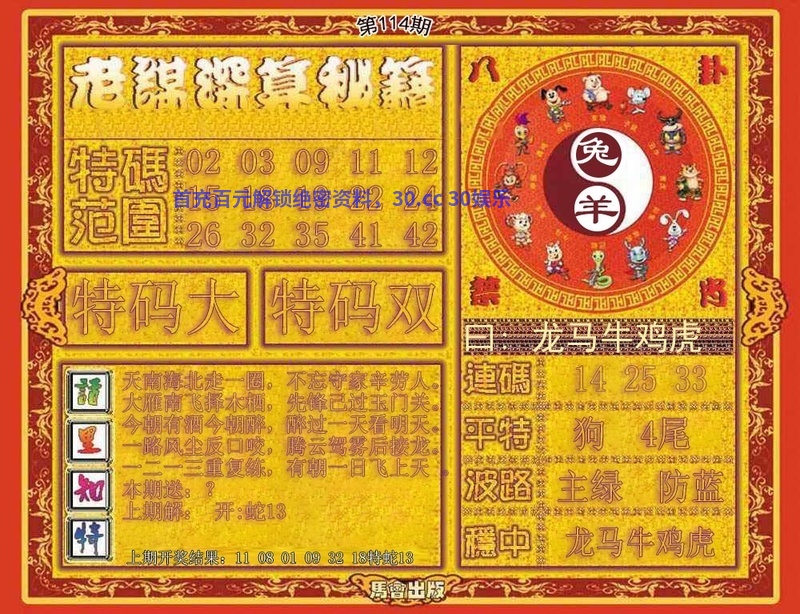 | 311期:一句解生肖/奇准特码诗/每期一玄机/七字中特料/独家资料 |